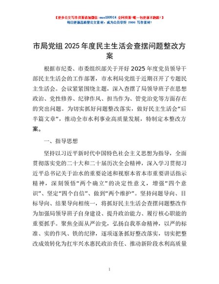 / 市局党组2025年度民主生活会查摆问题整改方案