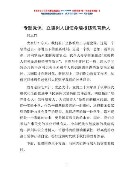 / 专题党课:立德树人担使命 培根铸魂育新人