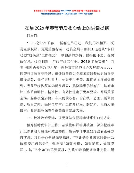 / 在局2026年春节节后收心会上的讲话提纲