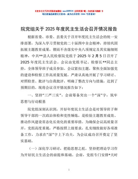 / 院党组关于2025年度民主生活会召开情况报告
