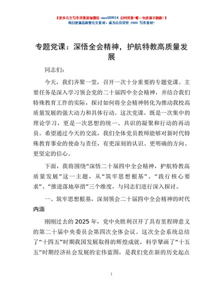 / 专题党课:深悟全会精神,护航特教高质量发展