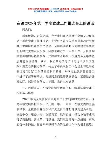 / 在镇2026年第一季度党建工作推进会上的讲话
