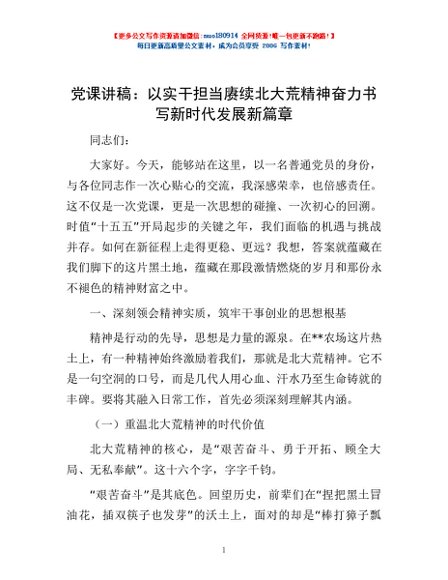 / 党课讲稿:以实干担当赓续北大荒精神 奋力书写新时代发展新篇章