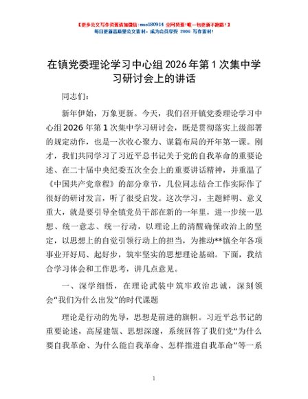 / 在镇党委理论学习中心组2026年第1次集中学习研讨会上的讲话
