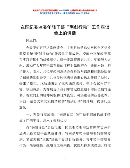/ 在区纪委监委年轻干部“砺剑行动”工作座谈会上的讲话