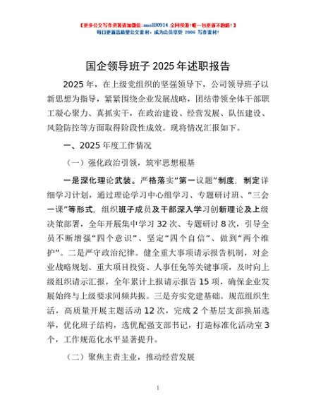 / 国企领导班子2025年述职报告