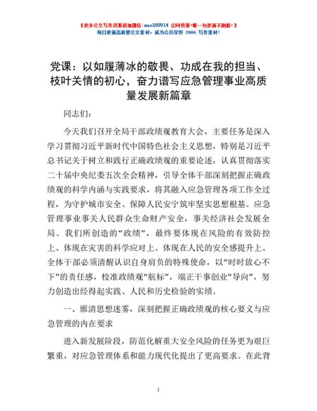 / 党课:以如履薄冰的敬畏、功成在我的担当、枝叶关情的初心,奋力谱写应急管理事业高质量发展新篇章