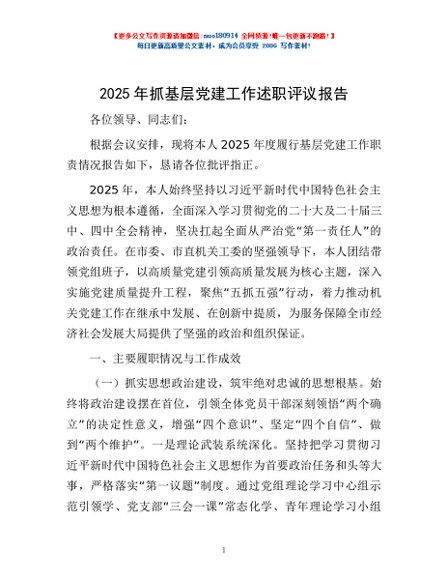 / 2025年抓基层党建工作述职评议报告