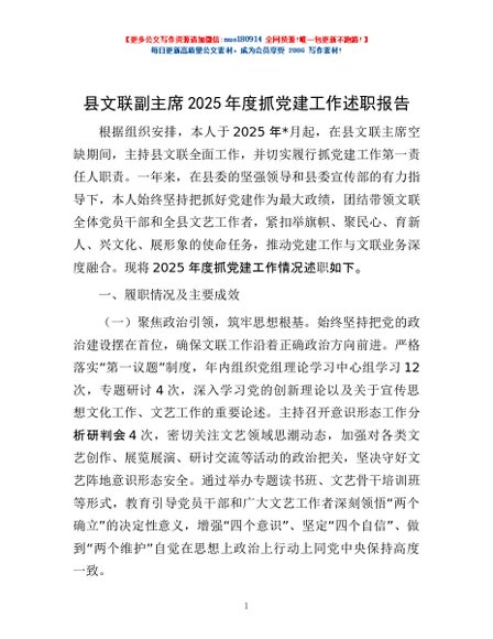 / 县文联副主席2025年度抓党建工作述职报告