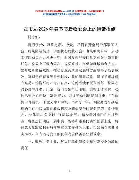 / 在市局2026年春节节后收心会上的讲话提纲