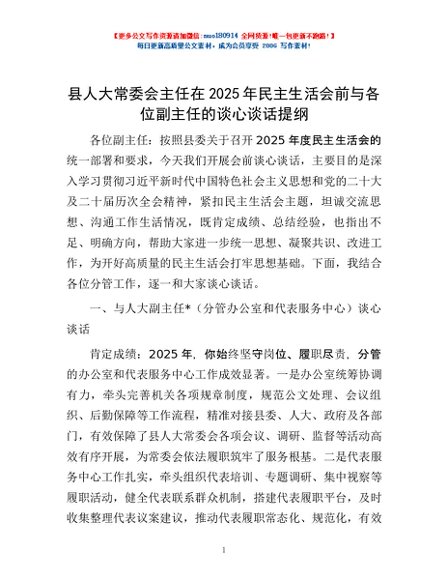 / 县人大常委会主任在2025年民主生活会前与各位副主任的谈心谈话提纲