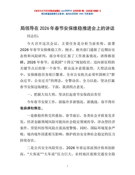 / 局领导在2026年春节安保维稳推进会上的讲话