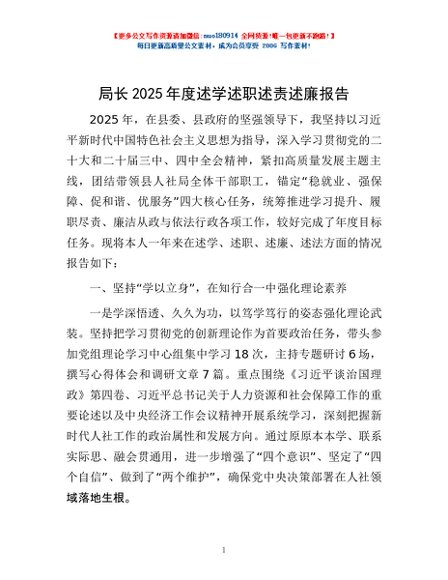 / 局长2025年度述学述职述责述廉报告