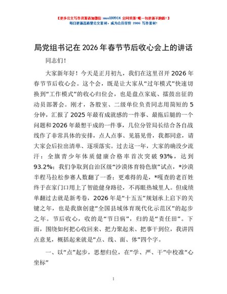 / 局党组书记在2026年春节节后收心会上的讲话