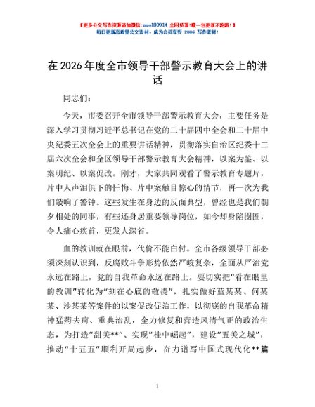 / 在2026年度全市领导干部警示教育大会上的讲话