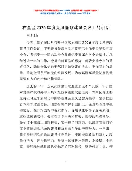 / 在全区2026年度党风廉政建设会议上的讲话