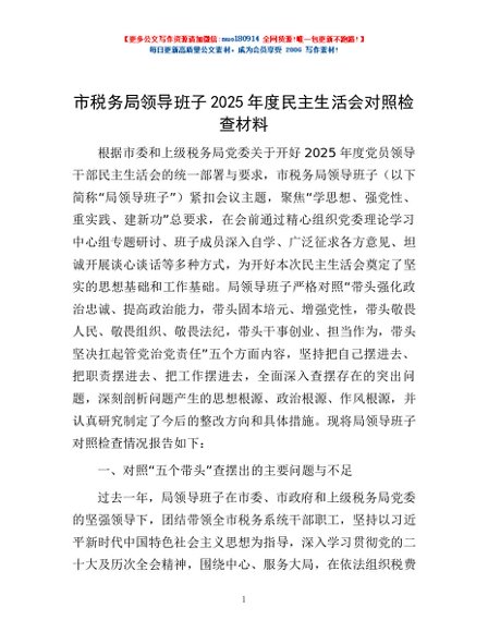 / 市税务局领导班子2025年度民主生活会对照检查材料