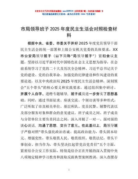 / 市局领导班子2025年度民主生活会对照检查材料