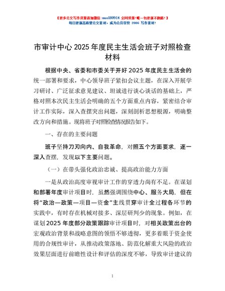 / 市审计中心2025年度民主生活会班子对照检查材料