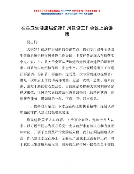/ 在县卫生健康局纪律作风建设工作会议上的讲话