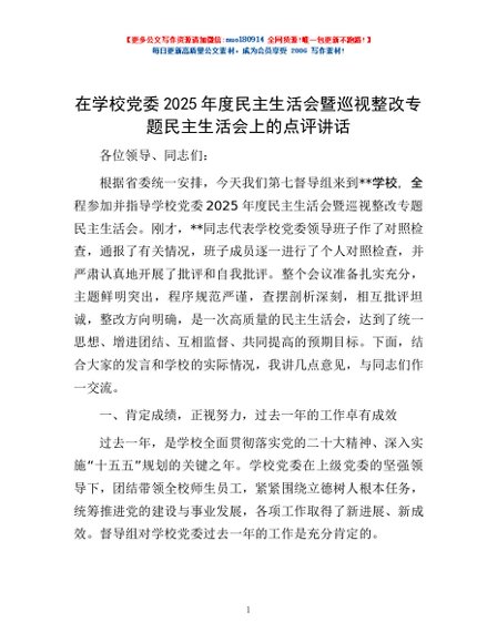/ 在学校党委2025年度民主生活会暨巡视整改专题民主生活会上的点评讲话