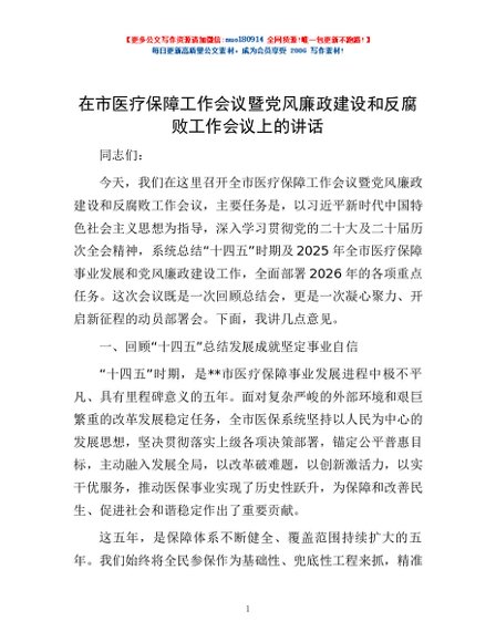 / 在市医疗保障工作会议暨党风廉政建设和反腐败工作会议上的讲话