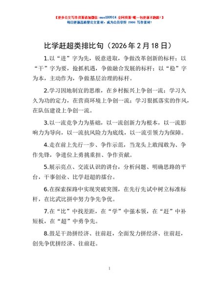 / 比学赶超类排比句(2026年2月18日)