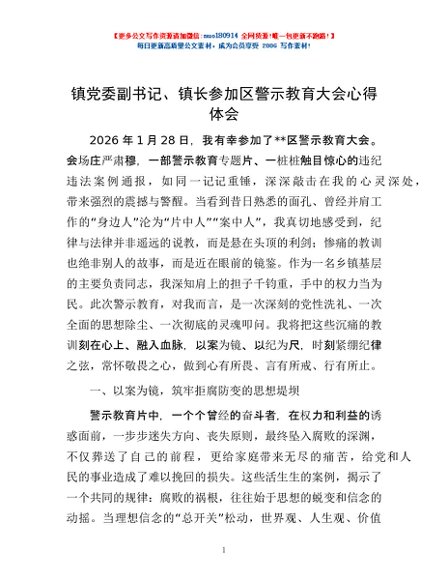 / 镇党委副书记、镇长参加区警示教育大会心得体会