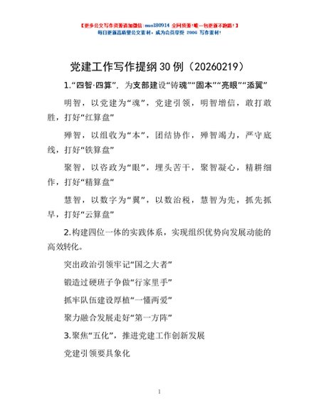 / 党建工作写作提纲30例(20260219)