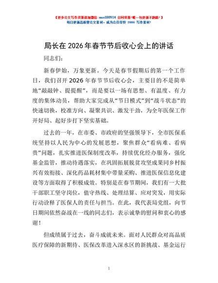 / 局长在2026年春节节后收心会上的讲话