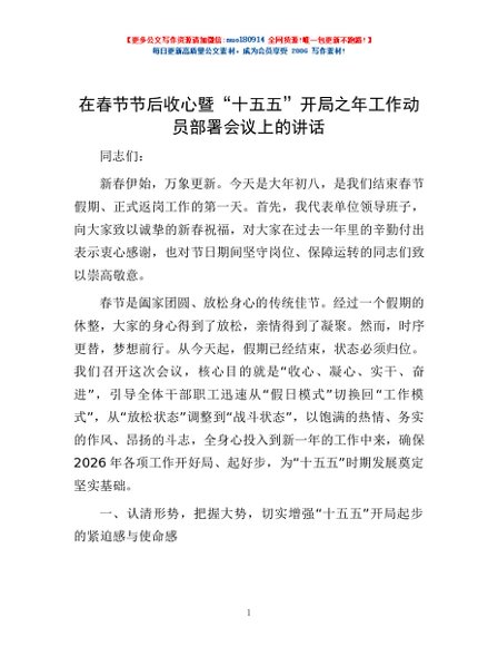 / 在春节节后收心暨“十五五”开局之年工作动员部署会议上的讲话