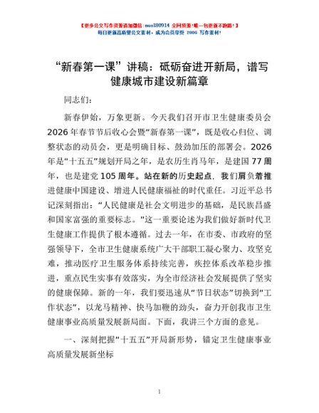 / “新春第一课”讲稿:砥砺奋进开新局,谱写健康城市建设新篇章