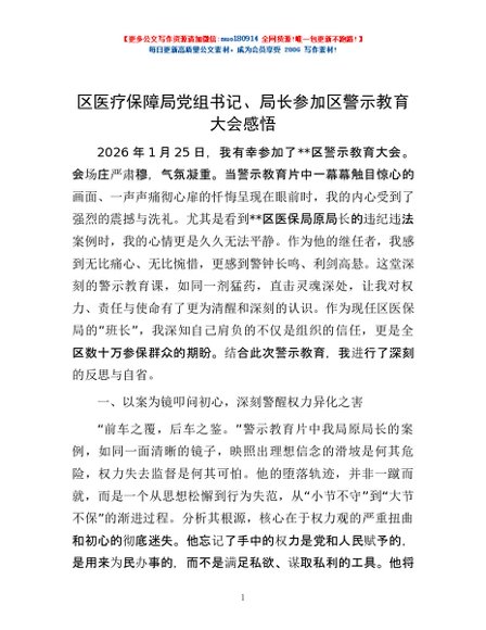 / 区医疗保障局党组书记、局长参加区警示教育大会感悟