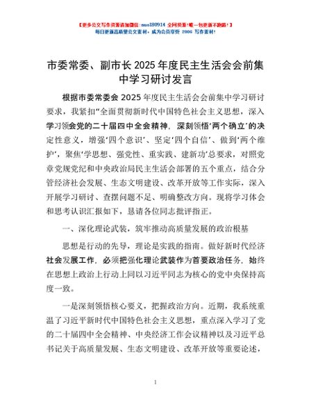/ 市委常委、副市长2025年度民主生活会会前集中学习研讨发言