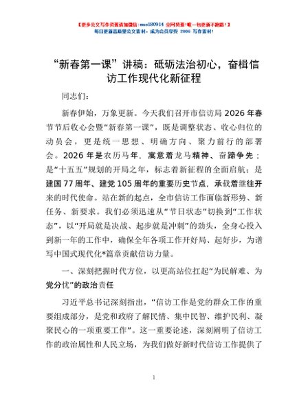 / “新春第一课”讲稿:砥砺法治初心,奋楫信访工作现代化新征程
