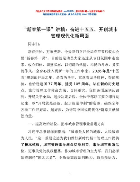 / “新春第一课”讲稿:奋进十五五,开创城市管理现代化新局面