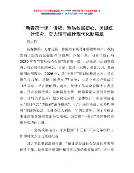 / “新春第一课”讲稿:砥砺数据初心,勇担统计使命,奋力谱写统计现代化新篇章