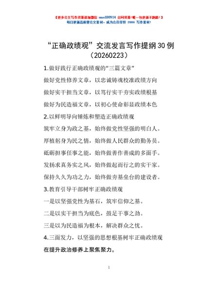 / “正确政绩观”交流发言写作提纲30例(20260223)