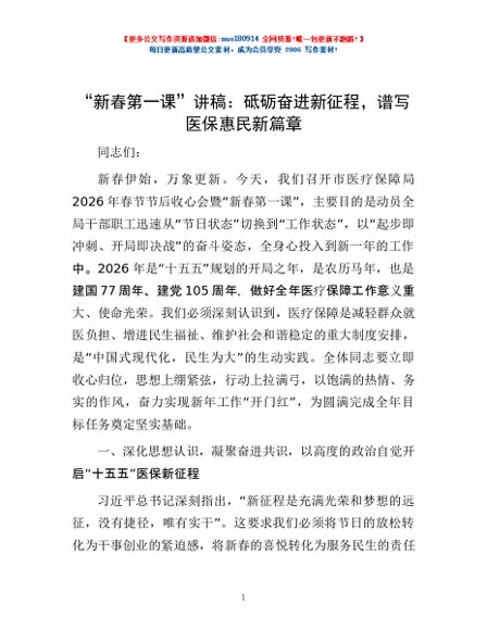 / “新春第一课”讲稿:砥砺奋进新征程,谱写医保惠民新篇章