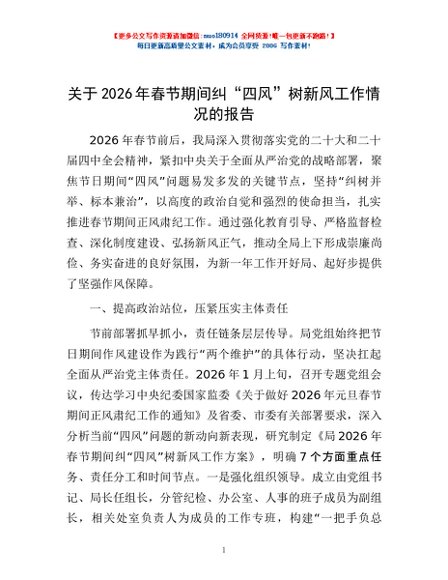 / 关于2026年春节期间纠“四风”树新风工作情况的报告