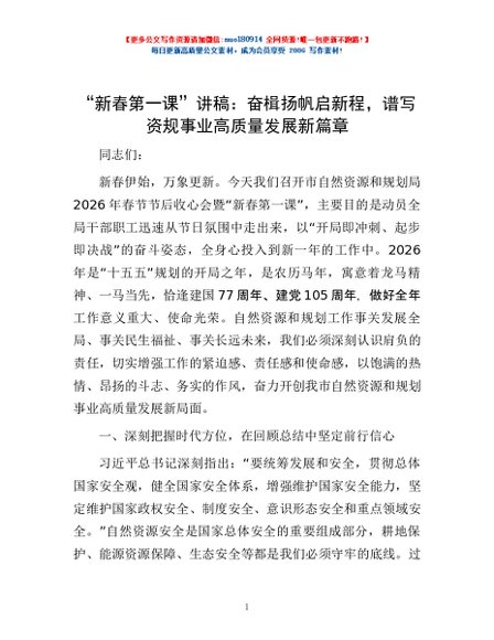 / “新春第一课”讲稿:奋楫扬帆启新程,谱写资规事业高质量发展新篇章