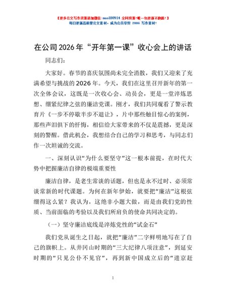 / 在公司2026年“开年第一课”收心会上的讲话