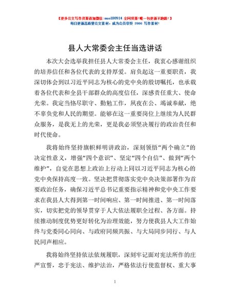 / 县人大常委会主任当选讲话