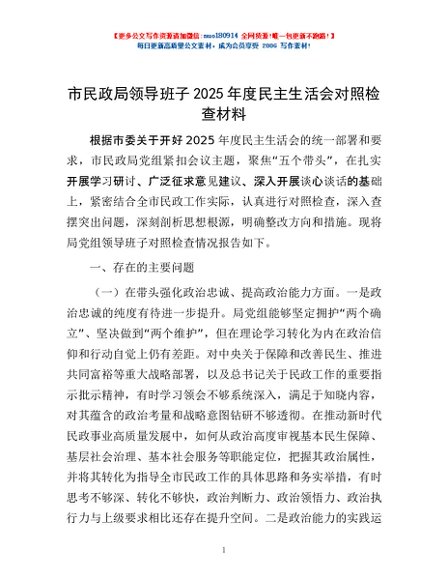 / 市民政局领导班子2025年度民主生活会对照检查材料