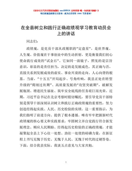 / 在全县树立和践行正确政绩观学习教育动员会上的讲话