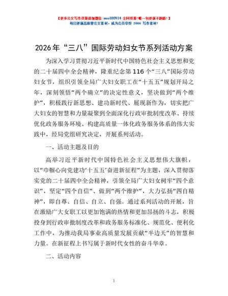 2026年“三八”国际劳动妇女节系列活动方案