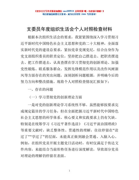 / 支委员年度组织生活会个人对照检查材料