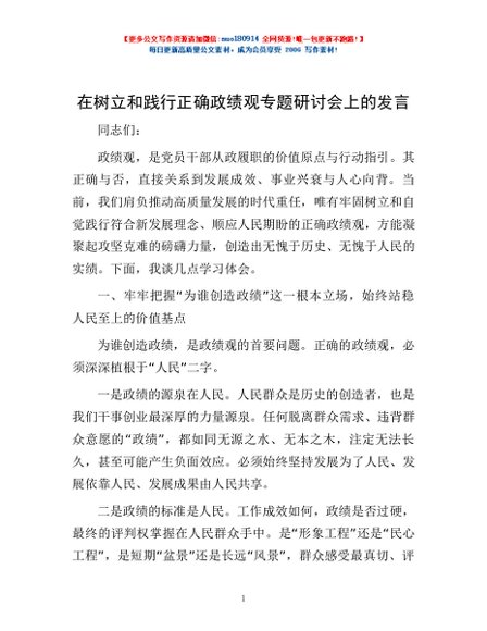 / 在树立和践行正确政绩观专题研讨会上的发言-01