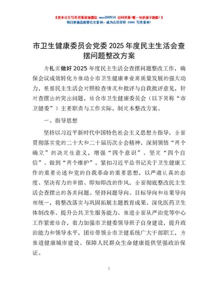 / 市卫生健康委员会党委2025年度民主生活会查摆问题整改方案