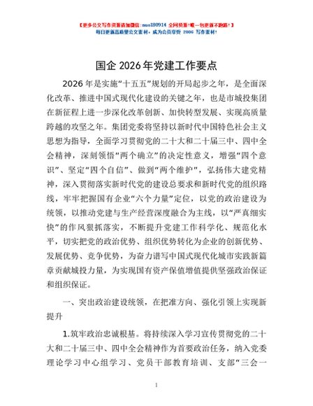 / 国企2026年党建工作要点